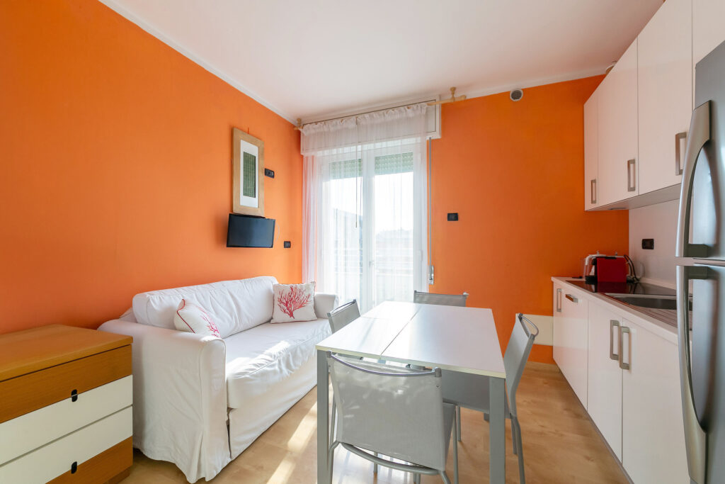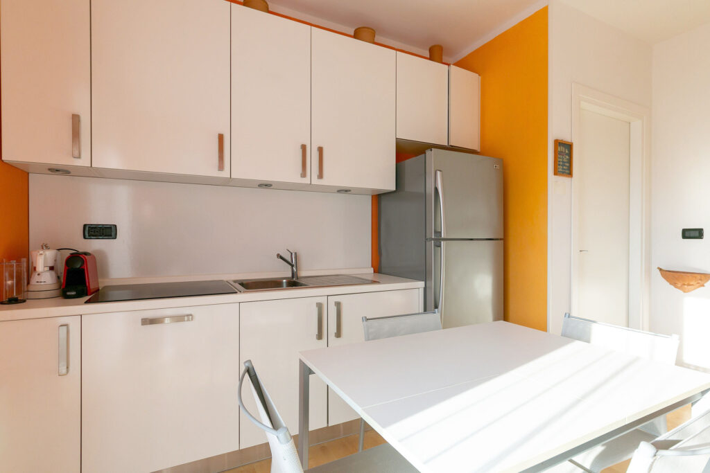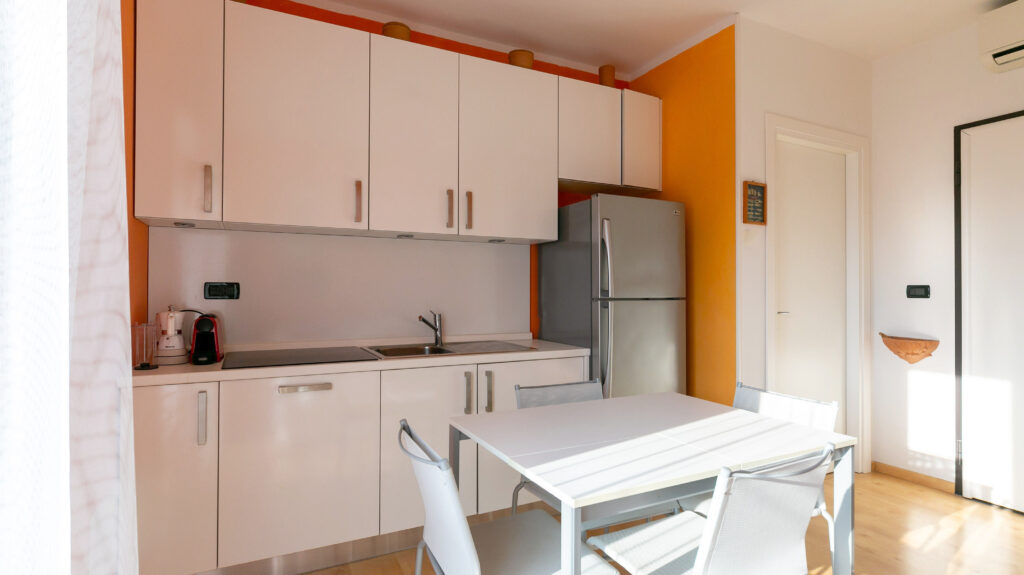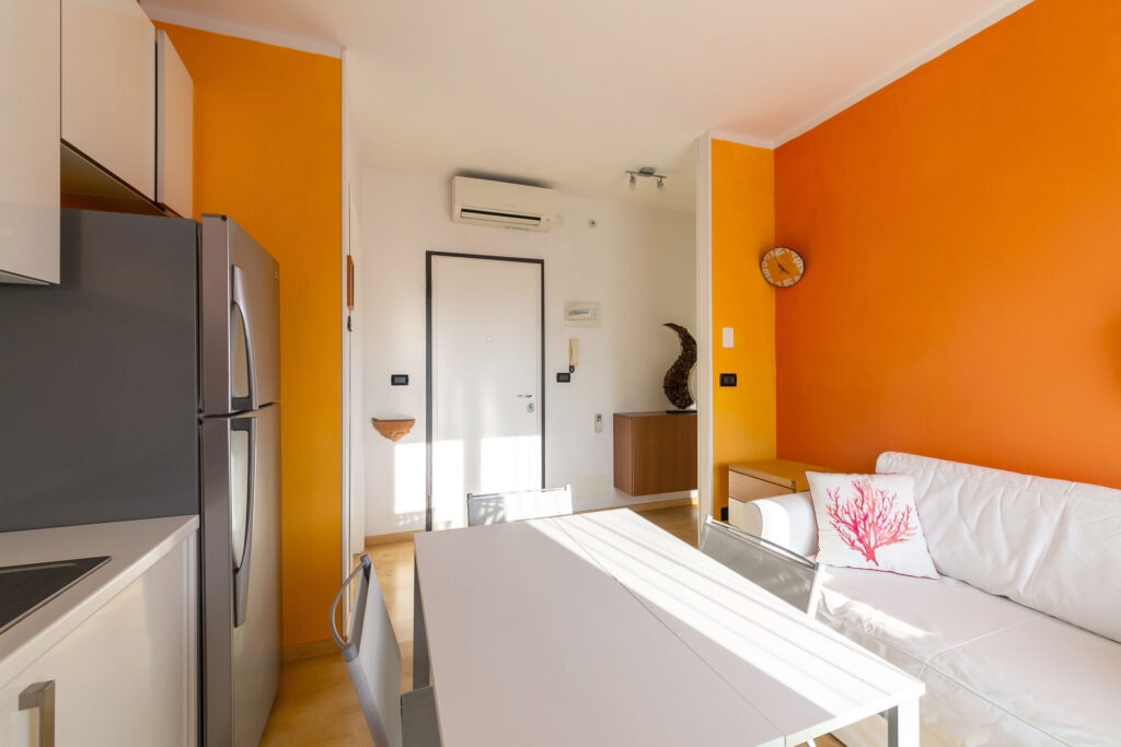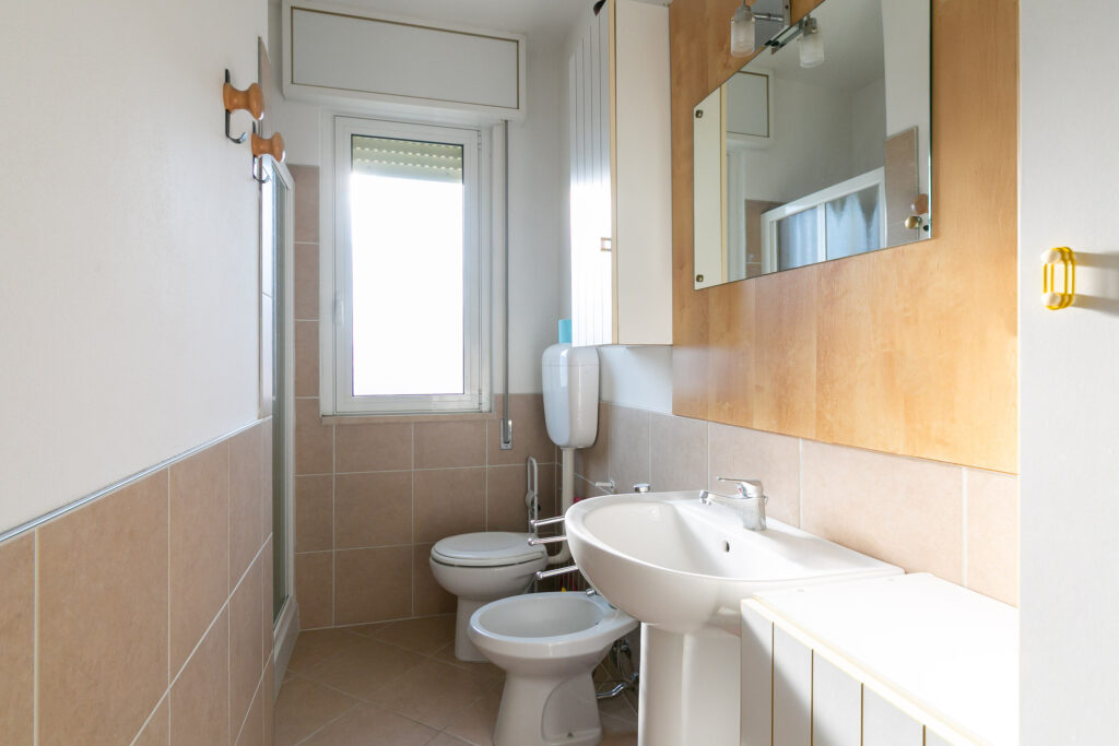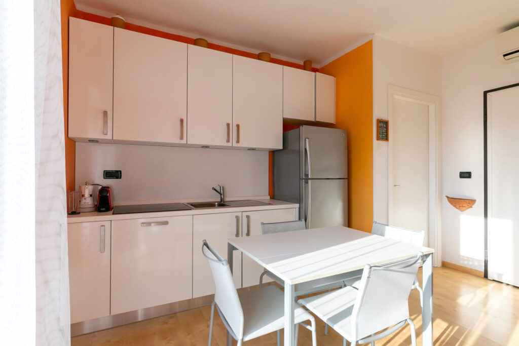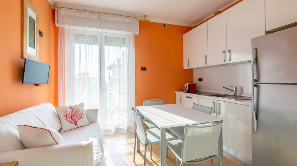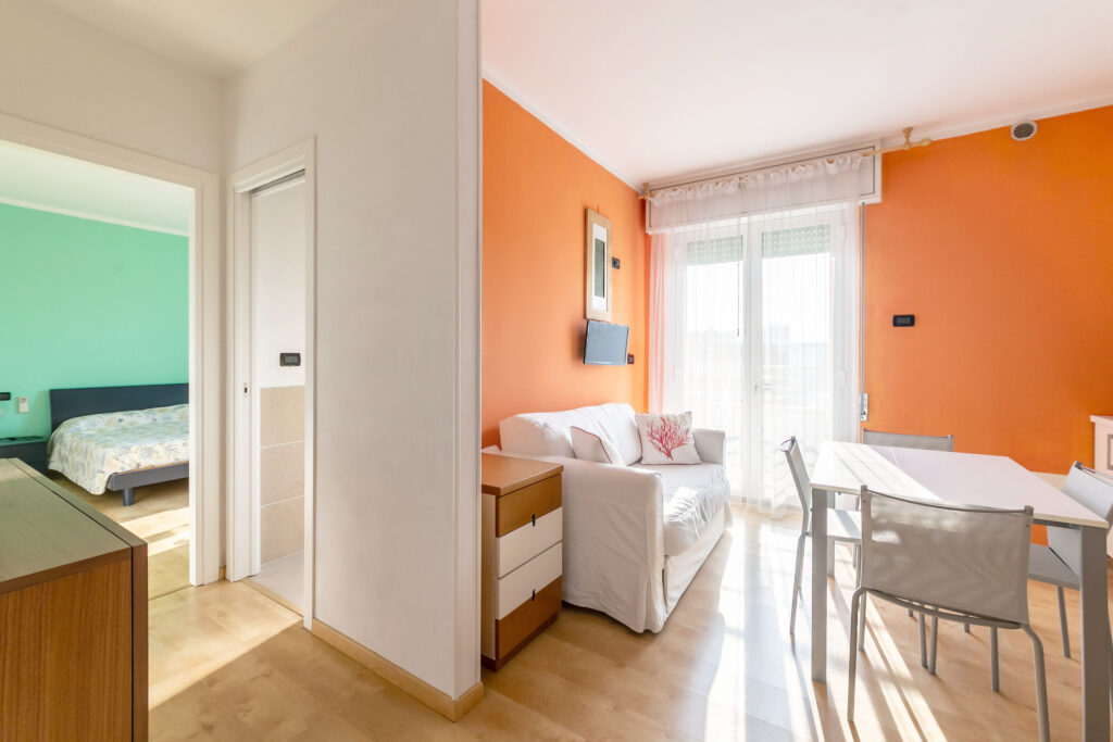Proponiamo in vendita un appartamento al quarto piano, con ascensore, a pochi passi da Piazza Torino e dalla spiaggia. L’immobile è composto da un ingresso sulla zona giorno con cucina a vista e porta finestra, che dà accesso a un comodo terrazzo. Un disimpegno separa la zona giorno dalla prima spaziosa camera da letto, dotata di un letto matrimoniale e accesso diretto al terrazzino. Il bagno, finestrato, è completo di sanitari e box doccia. L’appartamento dispone inoltre di una seconda camera, anch’essa con accesso ad un comodo terrazzo, arredata con due letti singoli.